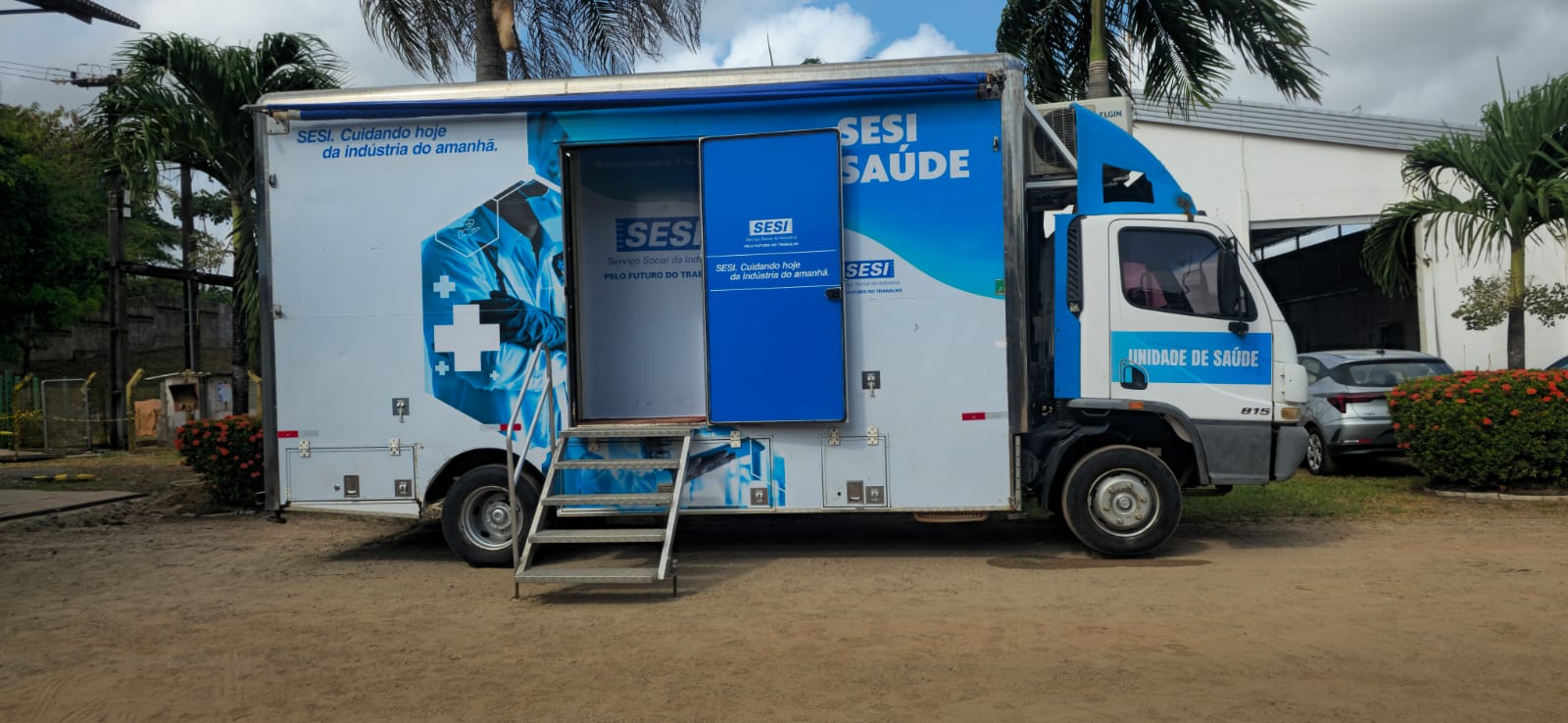 Enquanto isso, na Sede, houve um momento de saúde e prevenção. Em parceria com o SESI, parceiro que apoiou a SIPAT com o seu caminhão de atendimentos (Circuito Saúde). Oferecendo inúmeros serviços aos nossos funcionários que puderam cuidar da saúde durante a realização da ação no trabalho.