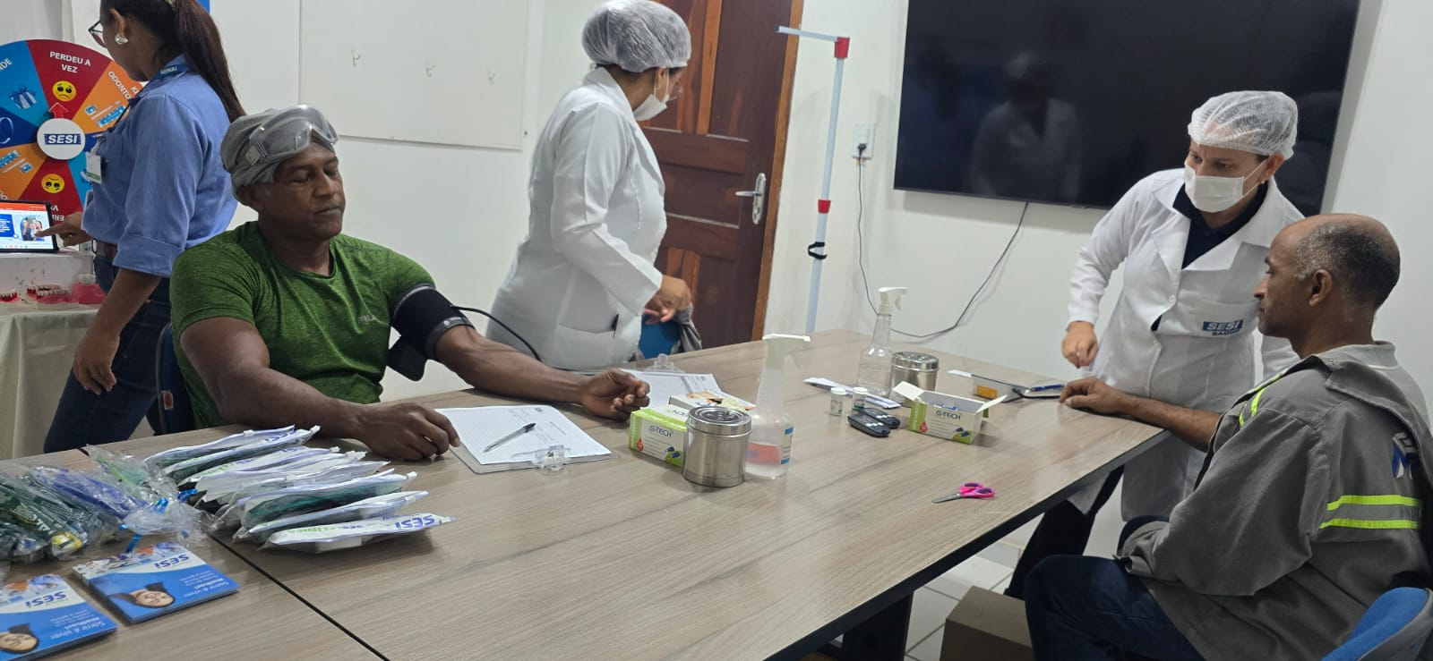 Entre os serviços ofertados tivemos: Testes de glicemia, vacinação, bioimpedância, testes de Covid, mesa odontológica e distribuição de kits para higiene bucal.